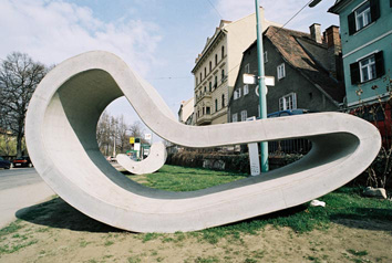 Wakolbingers Werk ist ein ironischer Beitrag zum Problem der Stadtmöblierung: zwei an futuristische Liegen/Fauteuils erinnernde Körper, die nach dem Prinzip Hülle und Kern aus einem Stück generiert wurden. Sie können als monumentale Sitzobjekte oder als abstrakte Skulpturen gelesen werden.