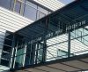 Inschrift2001Sandgestrahlte Glasfassade des Verbindungsstegs