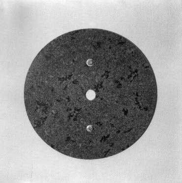 DAVID RABINOWITCH Foto: S. Berlinger, Wien Ceremonial Object 9 as Painting1990brasilianischer Granit, Schrauben (verzinkt) Ø 60 cm x 2 cmTondo in Brazilian Blue Granite with Centre Removed