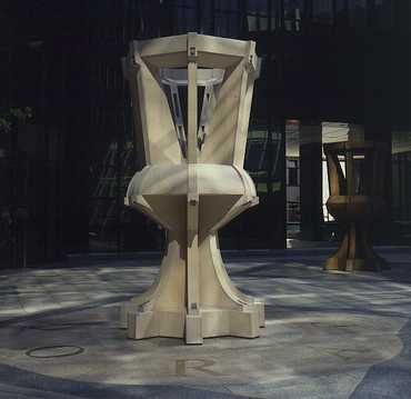 BERNHARD PRINZ Bonanza, Pandora1991laminated wooden boardseach Ø 185 cm, H 325 cm Ø 72,8, H 128 in.Westend Carre, Frankfurt Achenbach Art Consulting, Duesseldorf
