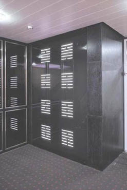 ECKE BONK Photo: Lachemann/Bruchhaus, Muenchen i-ching.os - ein Betriebssystem19978 glass light boxes, enamelled and sandblastedW 175 cm, H 257 cm W 70, H 101 in.Muenchner Rueck, Munich