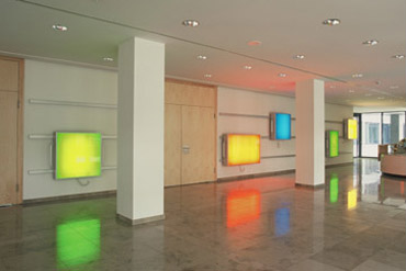 ROLF WALZ Photo: A. Overbruck, Köln Give me a Drag!2001anodized aluminium, stained glass, lightL 28 m L 1100 in.Metro, Duesseldorf Vinzentz art in architecture, Duesseldorf