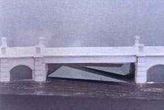 | |  | |  VALIE EXPORT Kunstmeile GürtelValie Export's triangular surfaces which can be walked on play with the surface of the bridge space. Adapted to the dimensions of the human body, the triangles provide imagery of the 'cultural body' of the environment. The sphere traces one possible direction of movement in the space. Traffic and 'visitor' intersect its trajectories with their own dynamic. | | | |